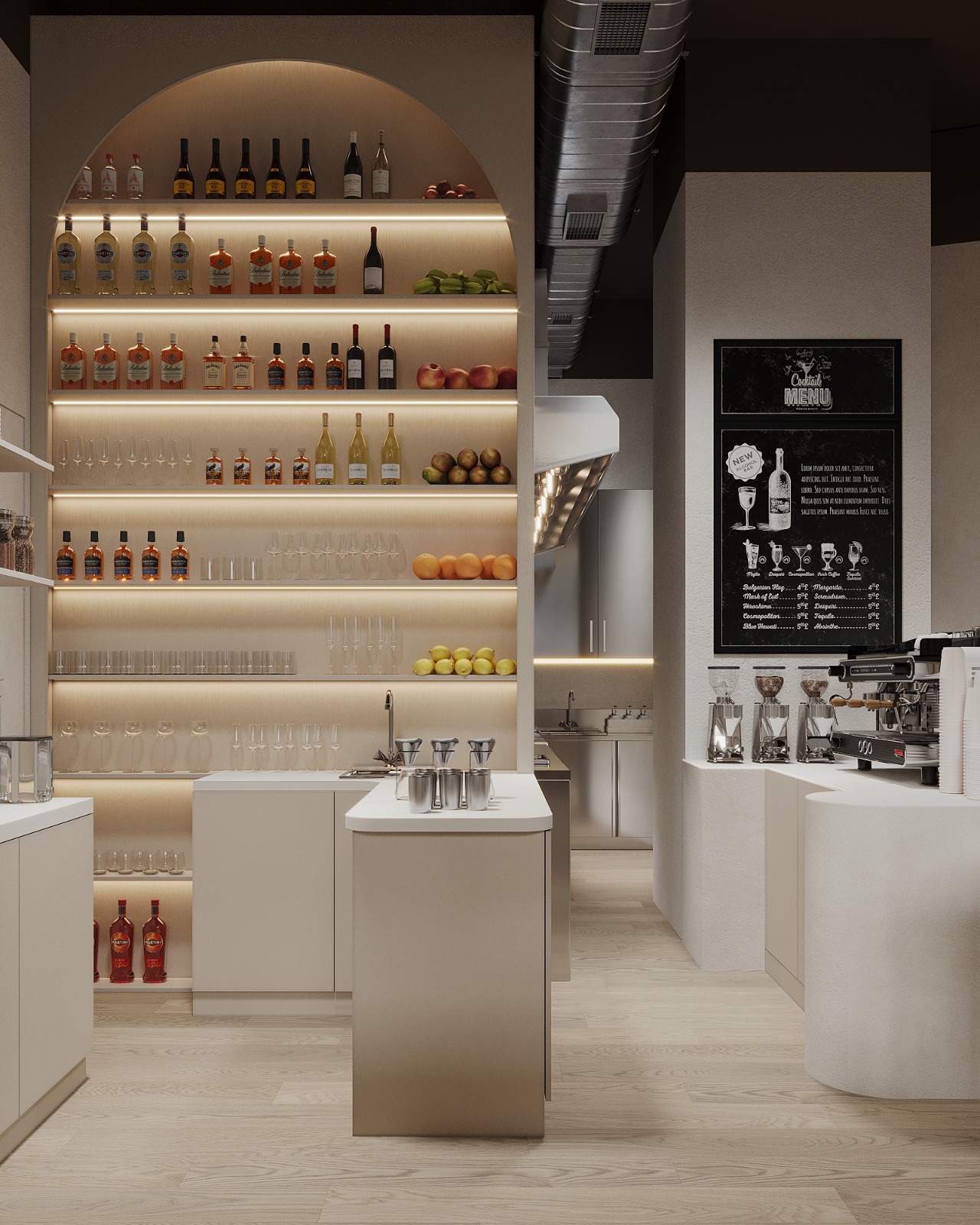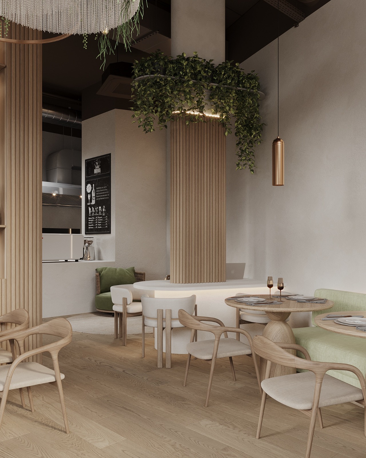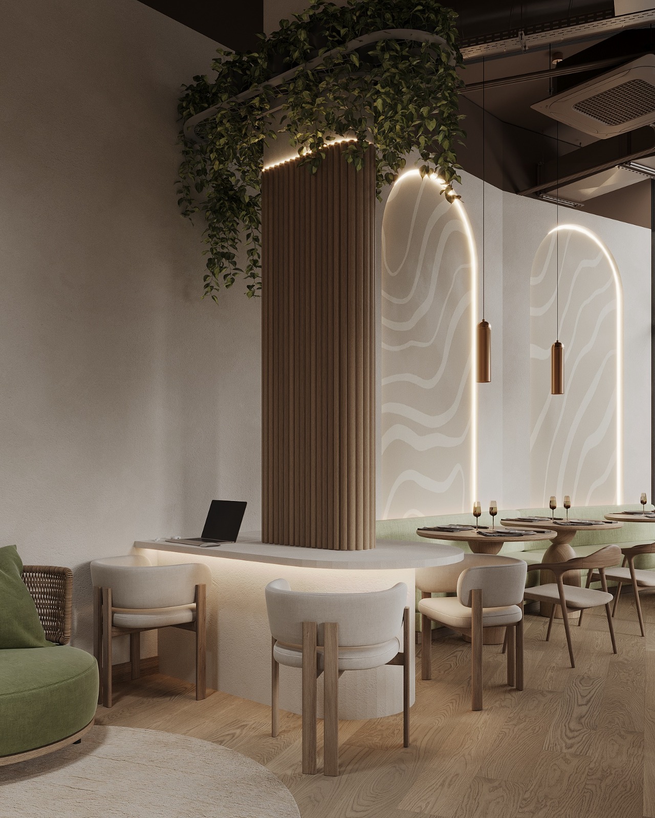 Für das Projekt Café Hamptons lag unser Fokus darauf, eine klare gestalterische Linie zu entwickeln, die funktionale Anforderungen mit modernen architektonischen Elementen und sanft abgerundeten Formen harmonisch vereint.