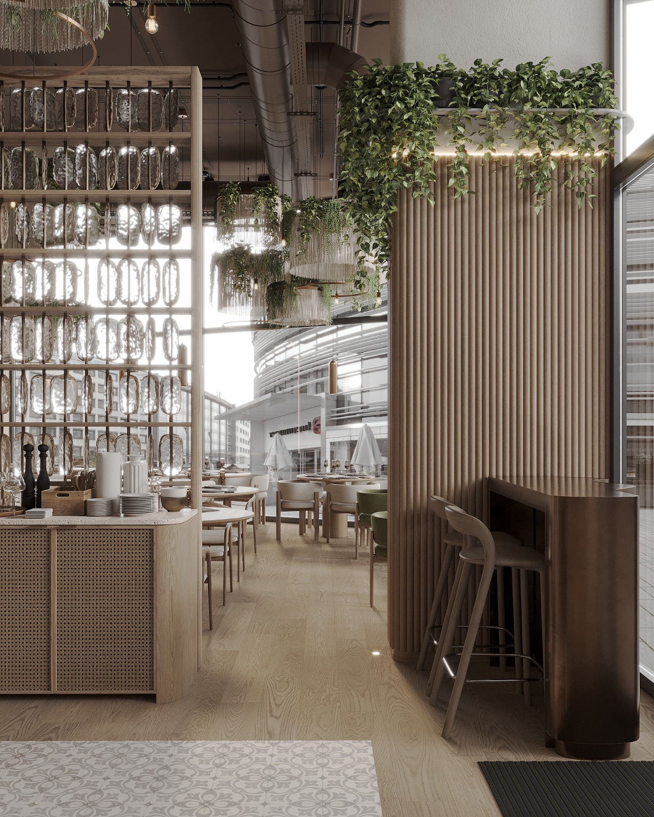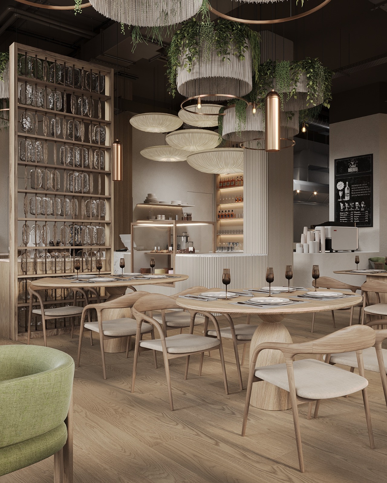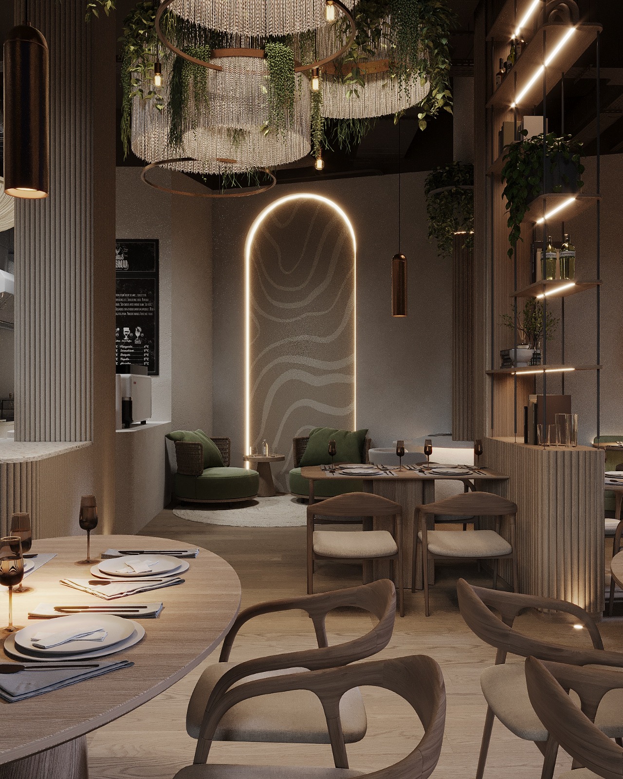 Für das Projekt Café Hamptons lag unser Fokus darauf, eine klare gestalterische Linie zu entwickeln, die funktionale Anforderungen mit modernen architektonischen Elementen und sanft abgerundeten Formen harmonisch vereint.