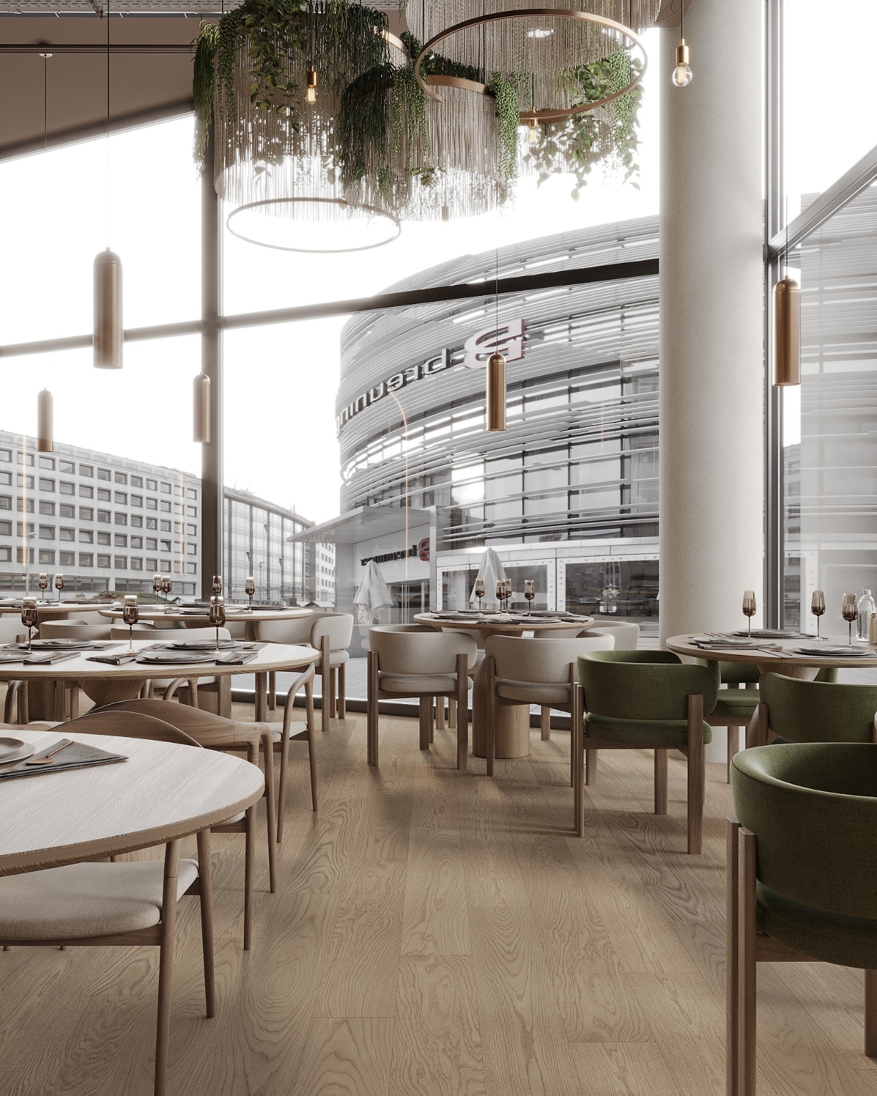 „Die Anforderungen an dieses Projekt waren einen stillvollen und modernen Treffpunkt zu gestalten, der urbane Eleganz mit einer warmen, und einladenden Atmosphäre verbindet.“