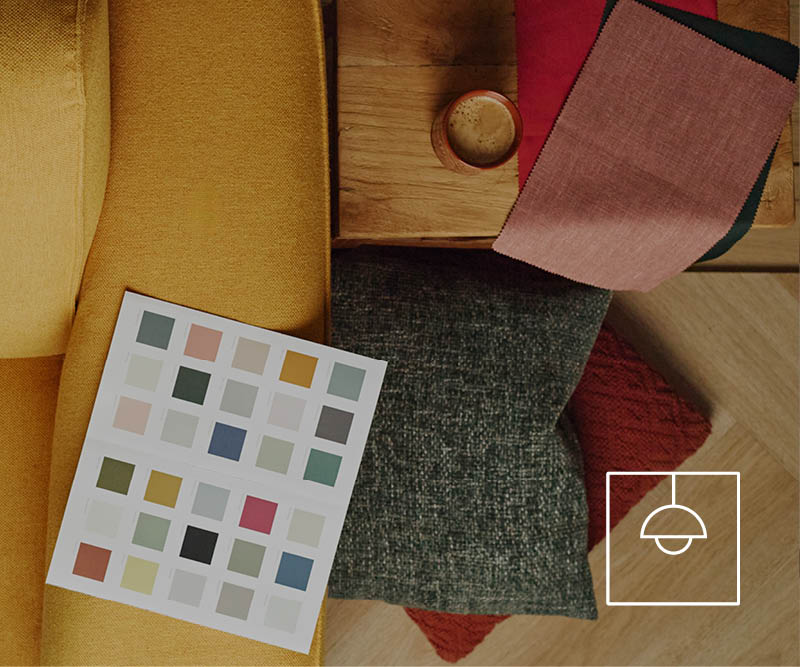Für ein stimmiges Gesamtbild werden harmonische Farbkombinationen sorgfältig ausgewählt. Ergänzend erfolgt die Zusammenstellung von Boden-, Wand- und Deckenmaterialien sowie die Definition von passenden Texturen, Stoffen und Oberflächen. So entsteht ein durchdachtes Konzept, das die gewünschte Atmosphäre unterstreicht und den Charakter des Raumes prägt.